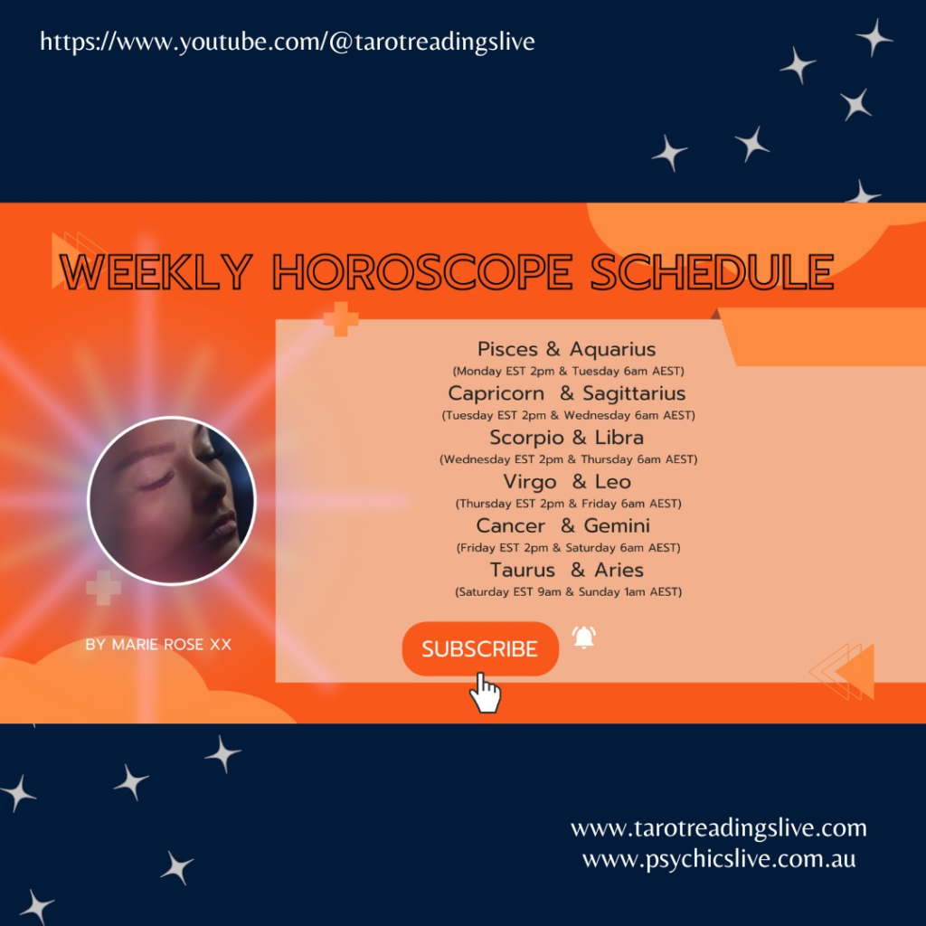 If you would like to get your Weekly, Monthly and Yearly Horoscopes, Subscribe, like comment and share our YouTube Channel. www.youtube.com/@tarotreadingslive